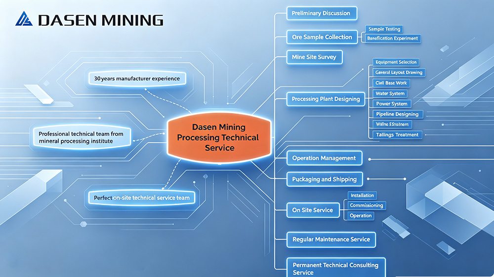 DASEN MINING MACHINERY EQUIPMENT INC. is a global provider of mineral processing technology and customized beneficiation solutions. We focus on engineering expertise—not equipment manufacturing— to help mining companies achieve efficient, stable, and sustainable mineral processing performance.