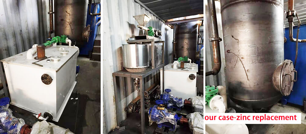 Main Machine :①Purification tank ②Zinc powder feeder ③Deoxygenation tower ④Fluidic vacuum pump ⑤Filter press